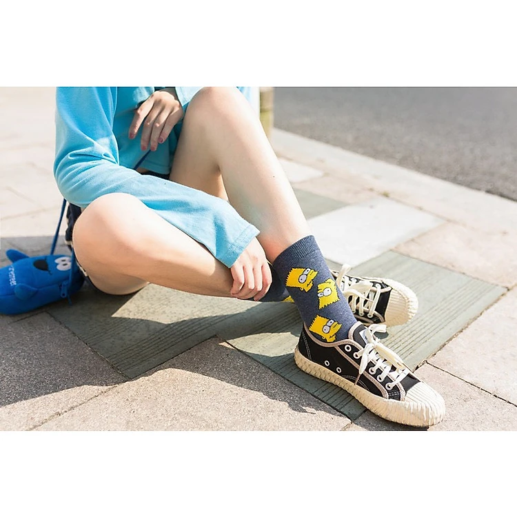 Combo 4 Đôi Tất nam nữ cổ cao họa tiết hoạt hình Simpson cực chất chất liệu dày dặn TN90