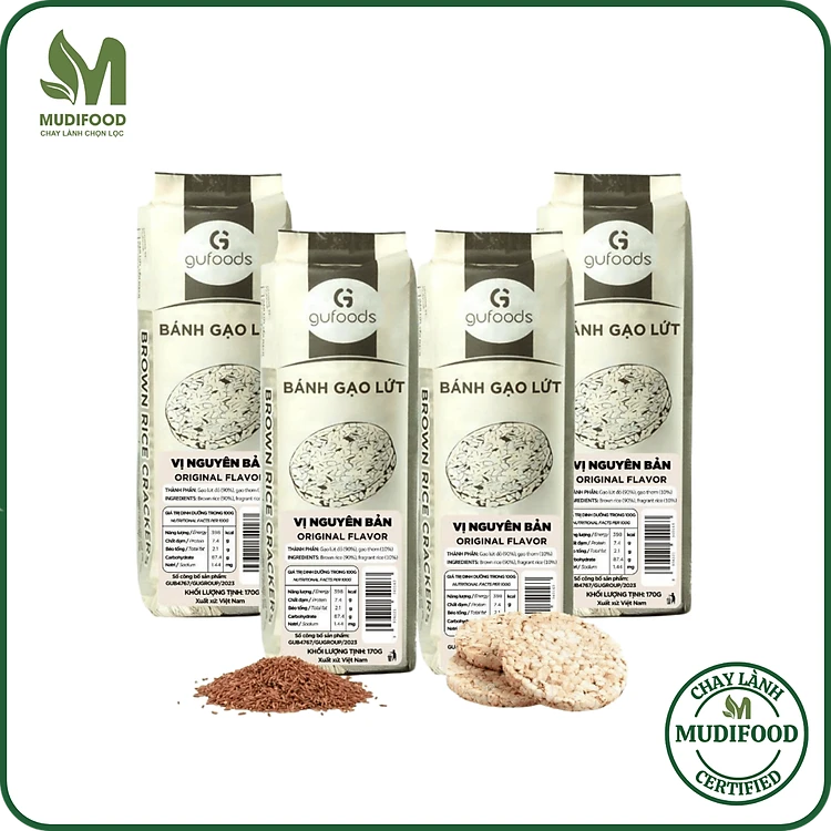 Combo 4 Gói Bánh Vị Huyền Mễ, Superfoods, Cỏ Ngọt, Muối Hồng, Bánh Gạo Lứt Ăn Kiêng Gufoods 170g - Bổ Sung Dinh Dưỡng Cho Người Ăn Chay, Ăn Kiêng, Ăn Vặt Healthy, Eatclean, Tập Gym