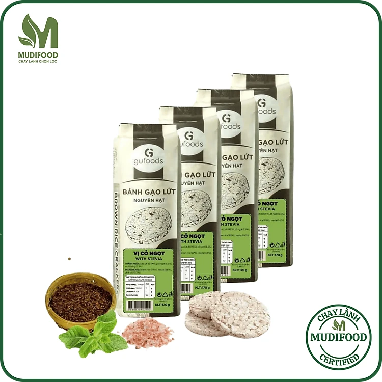 Combo 4 Gói Bánh Vị Huyền Mễ, Superfoods, Cỏ Ngọt, Muối Hồng, Yến Mạch - Bánh Gạo Lứt Ăn Kiêng Gufoods 170g - Bổ Sung Dinh Dưỡng Cho Người Ăn Chay, Ăn Kiêng, Ăn Vặt Healthy, Eatclean, Tập Gym
