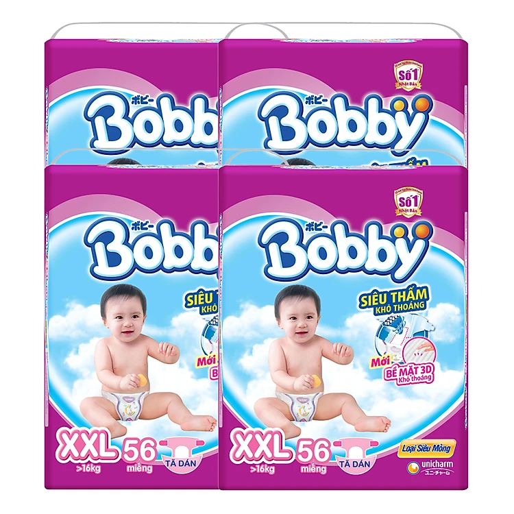 Combo 4 Gói Tã Dán Bobby Fresh Siêu Mỏng Gói Cực Đại XXL56 (56 Miếng)