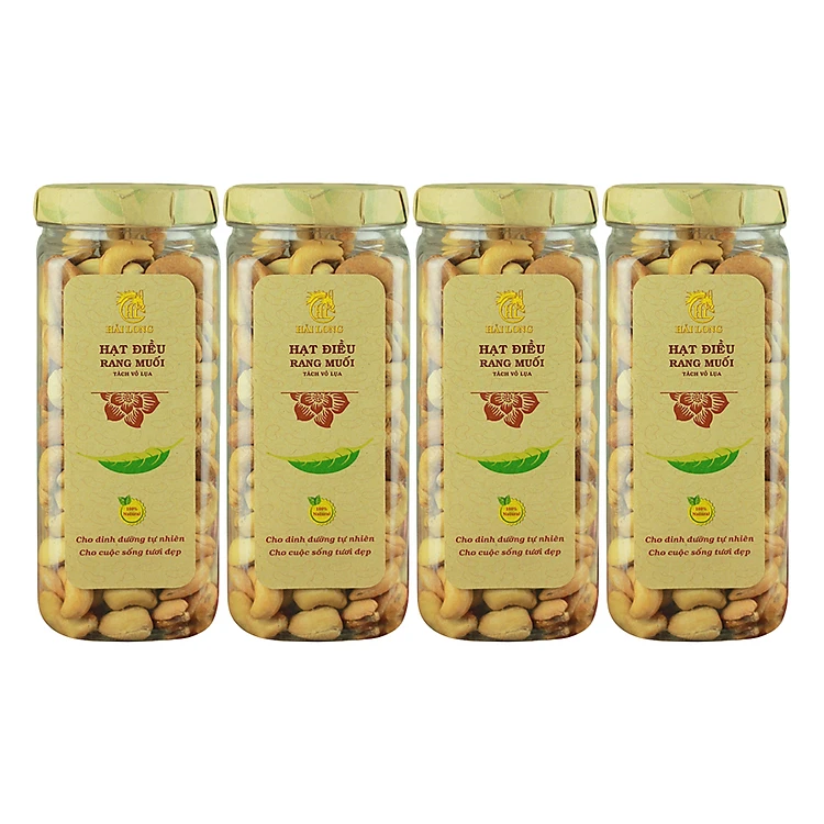 - Combo 4 Hũ Hạt Điều Rang Muối Tách Vỏ Lụa Hải Long (250g / Hũ) với tẩm ướp gia vị đặc biệt, cho hương vị tuyệt hảo khi thưởng thức. Hạt điều được chế biến ngay sau khi thu hoạch nên giữ nguyên được chất dinh dưỡng nhiều nhất và độ ngọt béo của hạt, hạt chắc nịch, không bị vỡ.