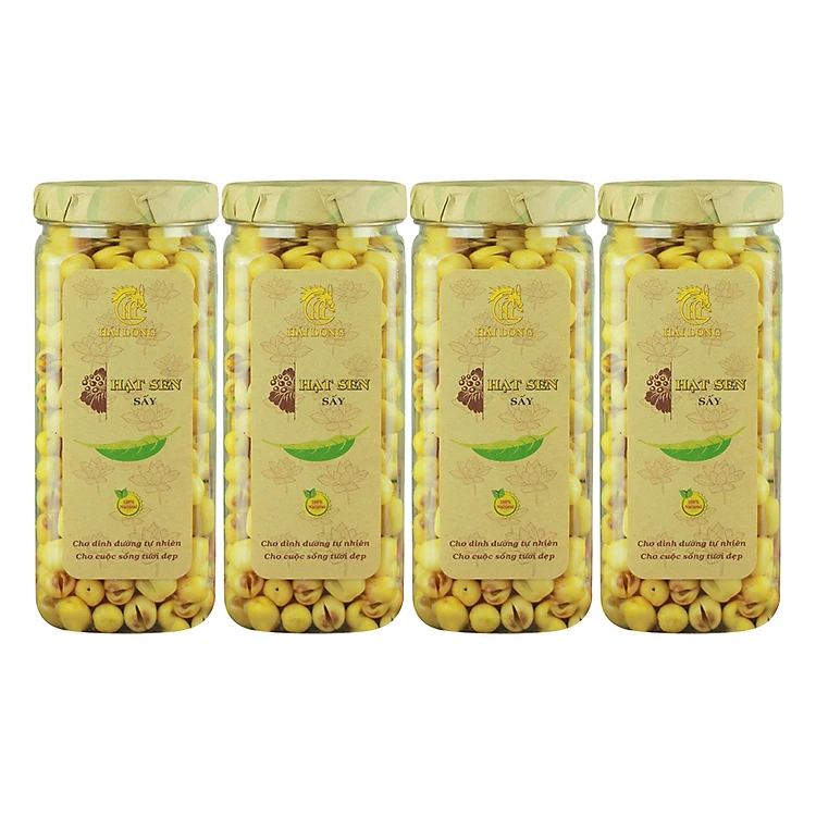 - Combo 4 Hũ Hạt Sen Sấy Hải Long (230g / Hũ) với thành phần hạt sen nguyên chất, được bóc tách vỏ cẩn thận nhưng vẫn đảm bảo độ giòn, ngọt pha chút bùi bùi rất riêng của loại hạt giàu dinh dưỡng này.