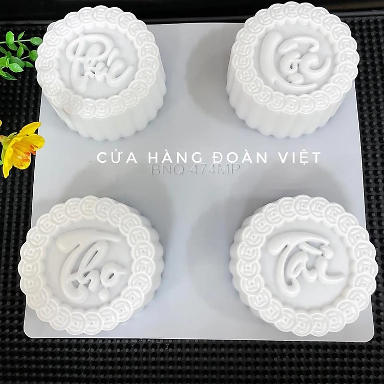 (COMBO 4 KHUÔN) Khuôn Nhấn Xôi, Khuôn Xôi, Khuôn Rau Câu Hình PHÚC LỘC THỌ TÀI 9 cm - Khuôn Nhựa, Sắc Nét. Chuyên phục v