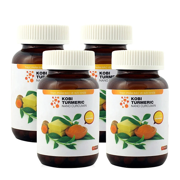 Bộ sản phẩm bao gồm 4 hũ Thực phẩm bảo vệ sức khỏe tinh bột nghệ Kobi Turmeric Nano Curcumin 30 viên/hũ