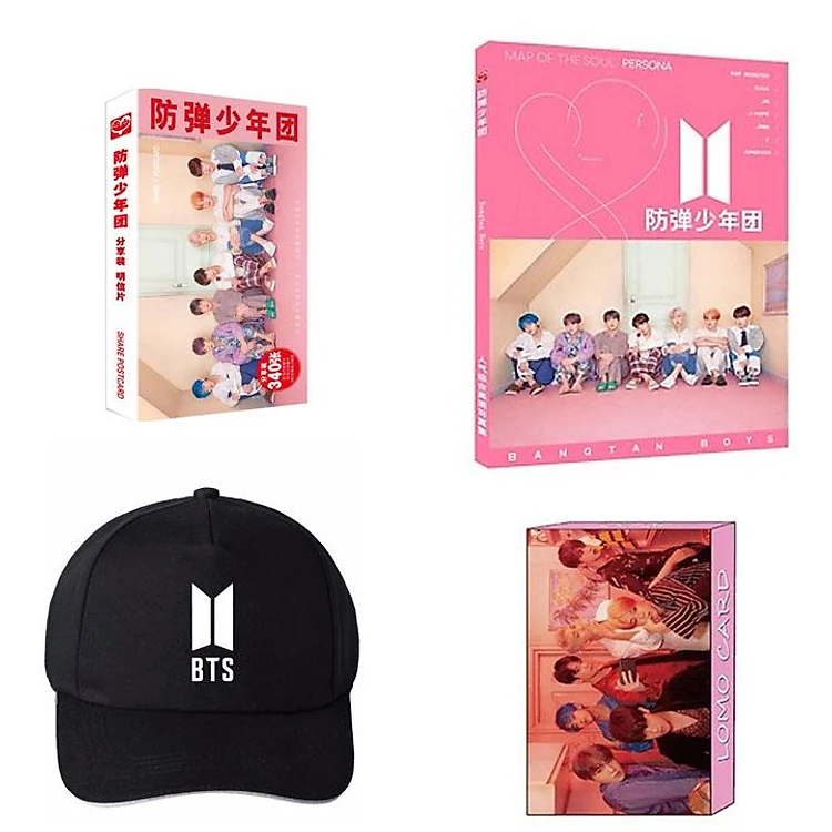 Combo 4 món đồ BTS gồm photobook postcard lomo mũ