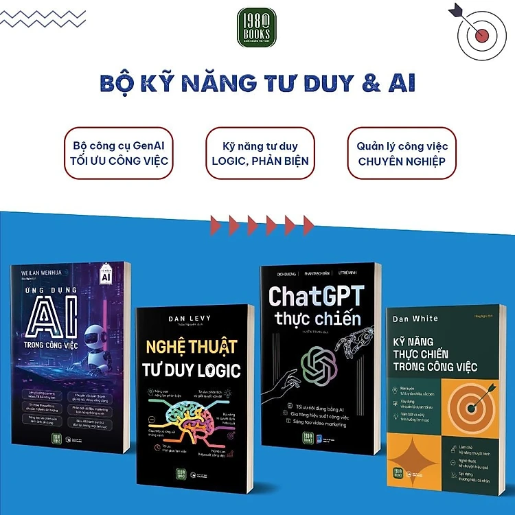 Combo 4 Sách Kỹ Năng - Chat GPT Thực Chiến + Kỹ Năng Thực Chiến Trong Công Việc + Ứng Dụng AI Trong Công Việc + Nghệ Thuật Tư Duy Logic