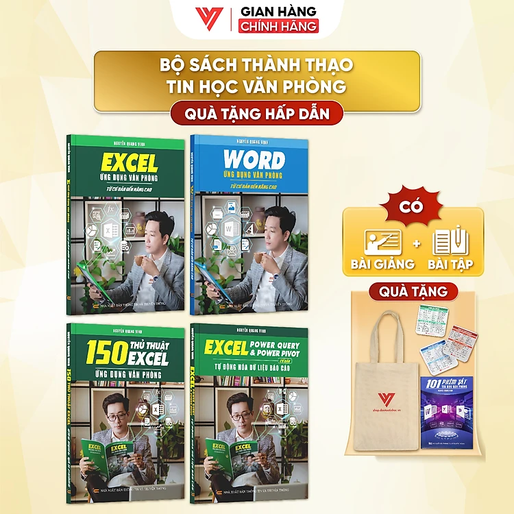 Combo 4 Sách Word, Excel Cơ Bản Đến Nâng Cao, Power Query & Power Pivot Và 150 Thủ Thuật Kèm Video Khóa Học