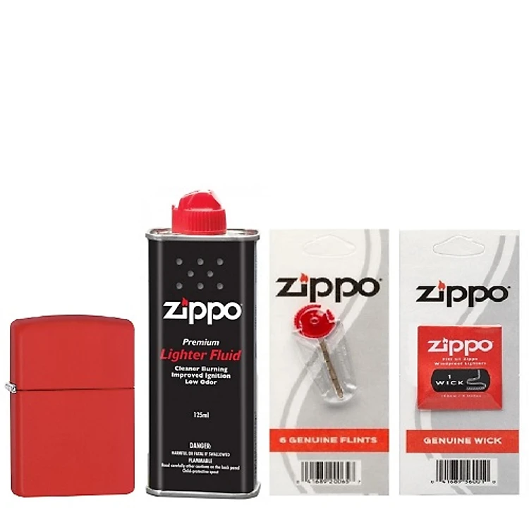 Combo 4 sản phẩm : Bật lửa Zipp Matte Red 233+Xăng+Đá+Bấc