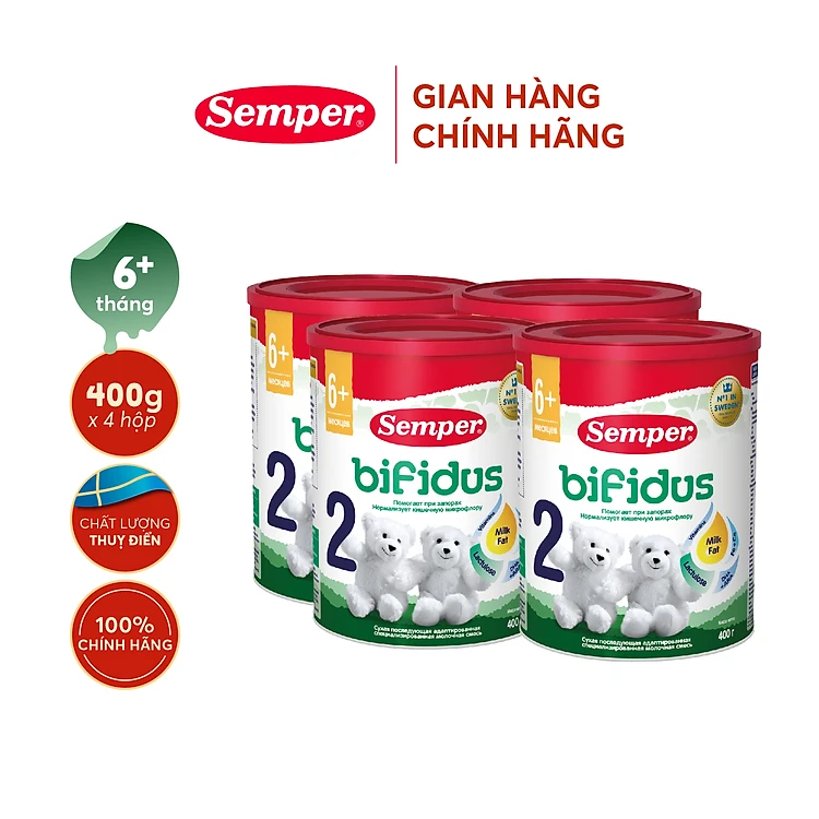 COMBO 4 HỘP SỮA SEMPER BIFIDUS SỐ 2 CHỐNG TÁO BÓN CHO TRẺ TỪ 6 THÁNG TUỔI TRỞ LÊN HỘP 400G