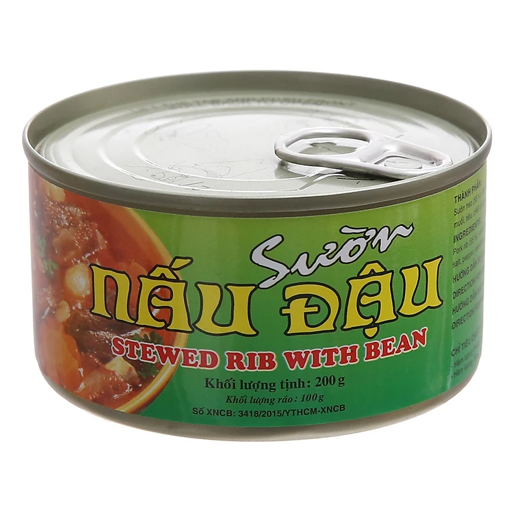 Thành phần: Sườn, đậu trắng, tinh bột bắp, sốt cà chua, đường, muối, tiêu, hành, tỏi, màu tự nhiên, chất điều vị.