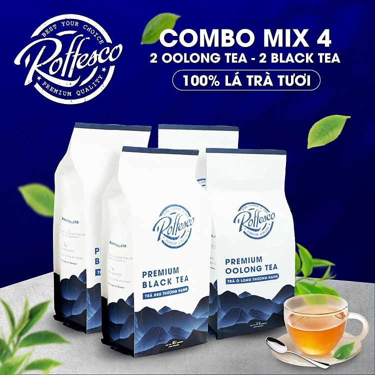Combo 4 Trà Ô Long Và Trà Đen ROFFESCO PREMIUM OOLONG TEA & PREMIUM BLACK TEA 100% Lá Trà Sạch