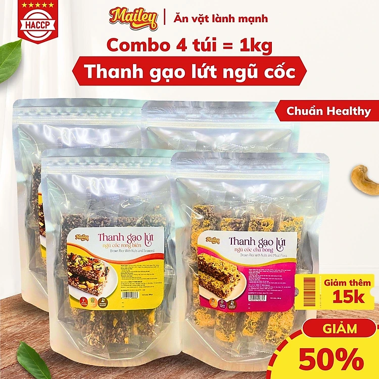 [COMBO 4 TÚI 1KG] Thanh gạo lứt chà bông/rong biển mix hạt Mailey Túi 250g - Bánh gạo lứt ăn kiêng hỗ trợ giảm cân