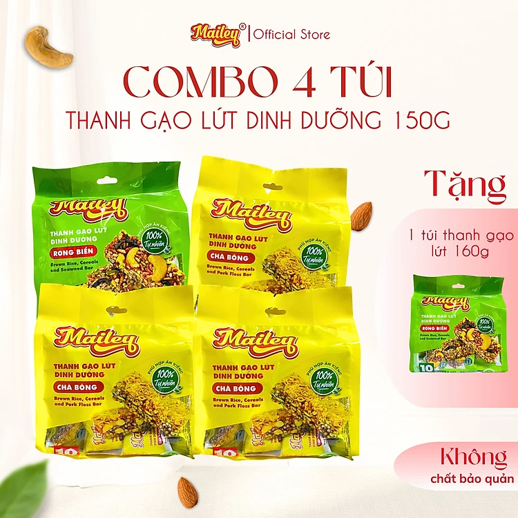[COMBO MUA 4 TẶNG 1] Thanh gạo lứt chà bông/rong biển mix hạt Mailey 150g - Bánh gạo lứt ăn kiêng hỗ trợ giảm cân