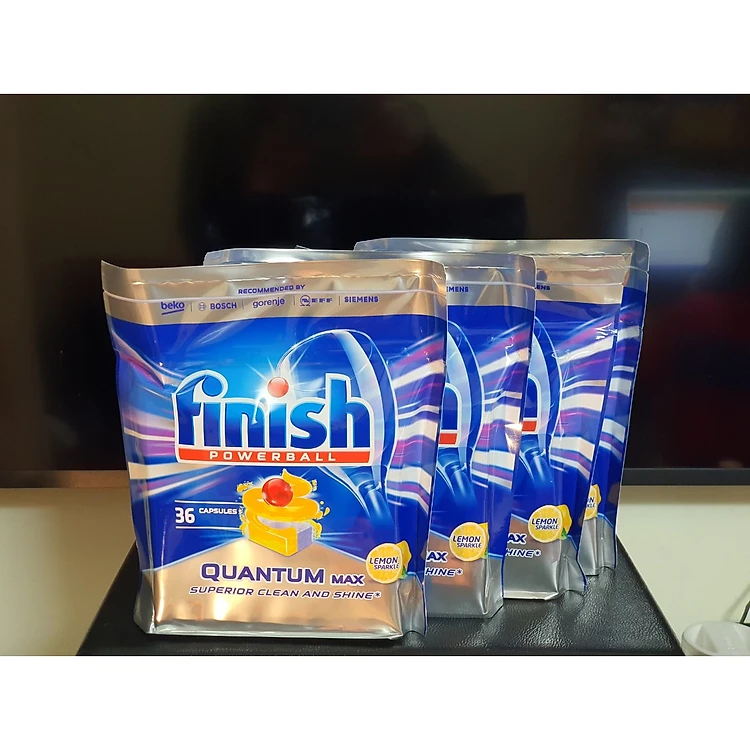 - Riêng với viên rửa chén Finish Quantum Max Dishwasher Tablets Lemon với sự tích hợp lượng muối cao giúp các gia đình ở khu vực độ nước cứng cao thật sự hài lòng.