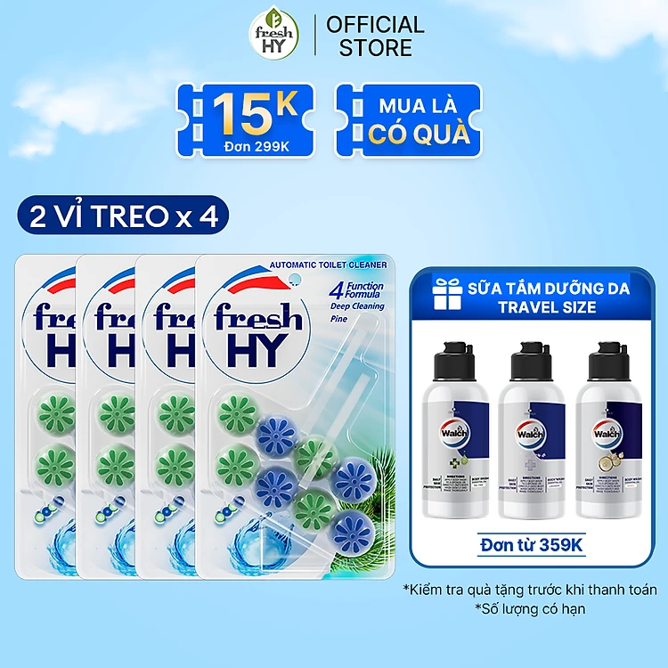 Combo 4 Viên Tẩy Bồn Cầu Fresh HY 350 Lần Xả, Làm Sạch Khuẩn & Ngăn Ngừa Mảng Bám, Khử Mùi Và Lưu Hương Thơm Mát (2 Vỉ Treo X4)