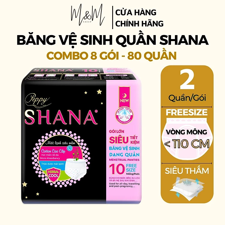 Combo 40 gói Băng vệ sinh quần Shana Freesize Siêu mềm Siêu thấm hút 2 quần/gói