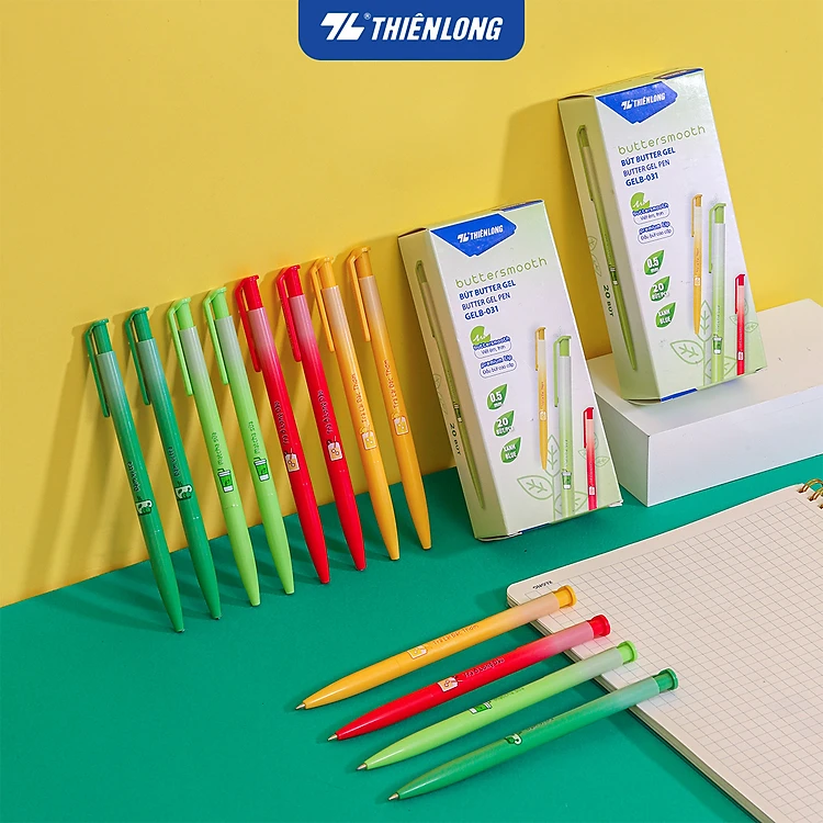 Combo 5/10/20 Bút gel B - Buttersmooth Gel Thiên Long GELB-031 - Premium Tip viết êm, trơn - Mực Xanh - Thân ngẫu nhiên