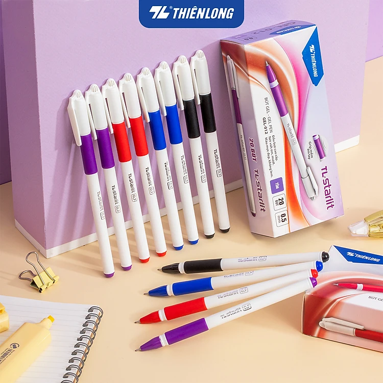 Combo 5/10/20 Bút Gel Thiên Long GEL-012 ngòi 0.5mm mực xanh đỏ đen tím có đệm cầm tay mềm đầu bi cao cấp