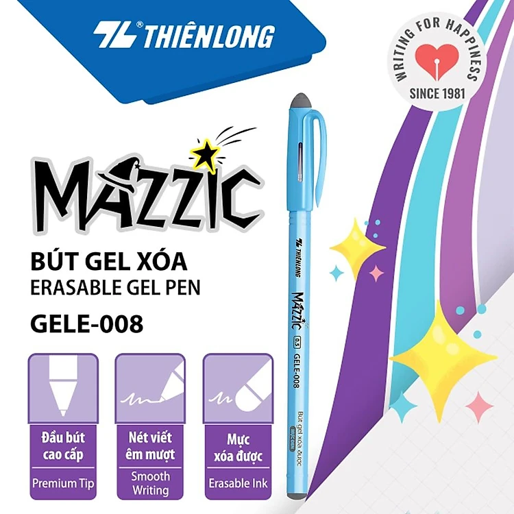 Combo 5/10/20 bút gel xóa được Thiên Long GELE-008 ngòi 0.5mm nắp đậy, gôm hai đầu bút, phù hợp học sinh, văn phòng
