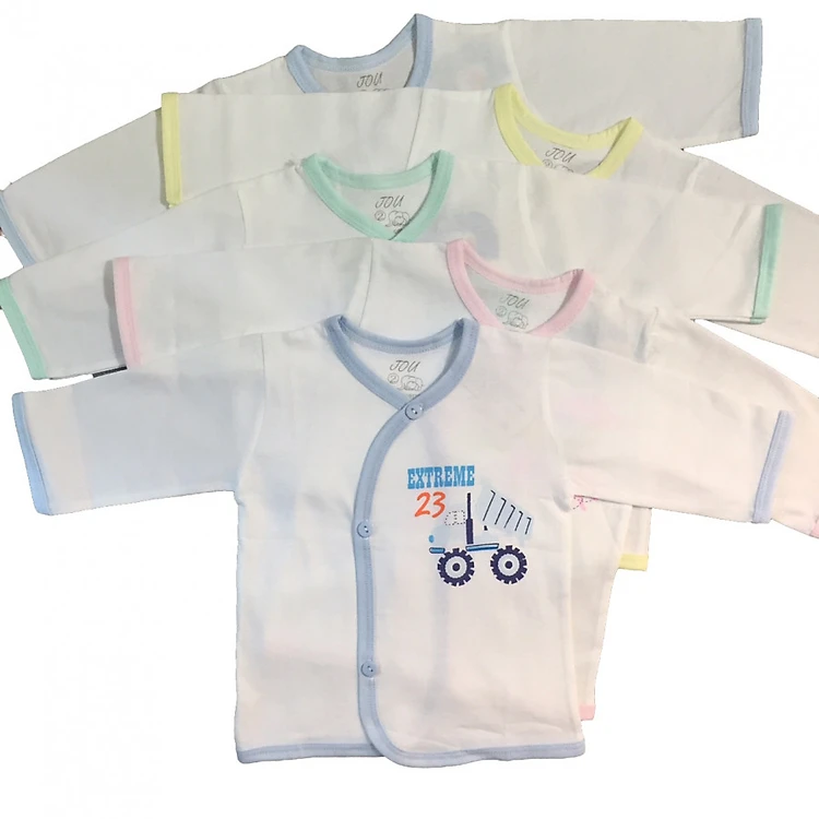 Combo 5 áo tay dài cài xéo trắng JOU-TDCX-TRANG cho bé sơ sinh, chất vải 100% cotton mềm mịn, xuất xứ Việt Nam