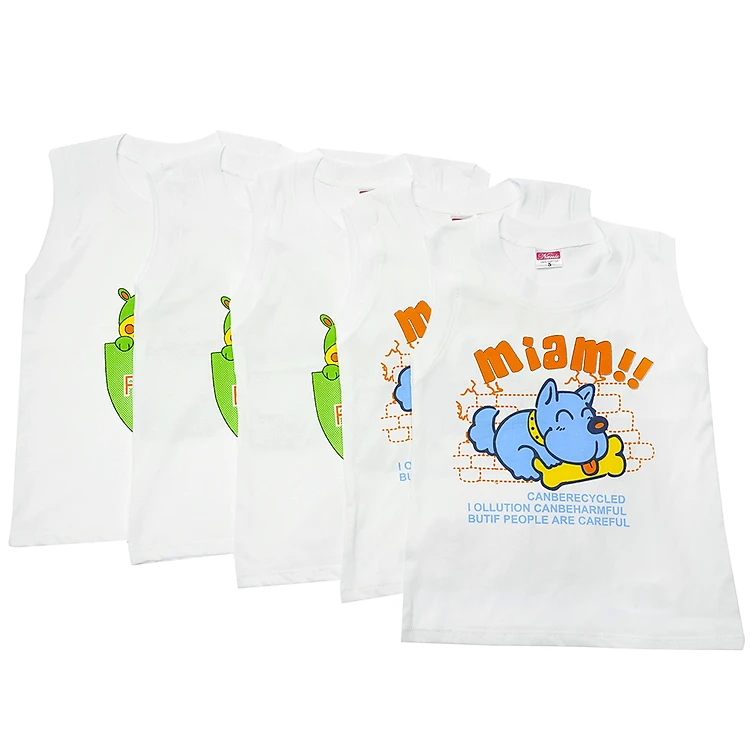 Combo 5 Áo Tay Lỡ Bé Trai Trắng Nanio thích hợp mặc khi thời tiết nóng bức với thiết kế sát nách và form rộng rãi. Cổ áo tròn đẹp mắt và dễ mặc. Áo có màu trắng bắt mắt, in hình ngộ nghĩnh mang lại vẻ nổi bật và đáng yêu cho các bé.