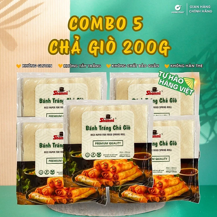 COMBO 5 Bánh tráng chả giò Shammi vuông 22cm 200g (bánh tráng cuốn chả giò, bánh đa nem xuất khẩu)