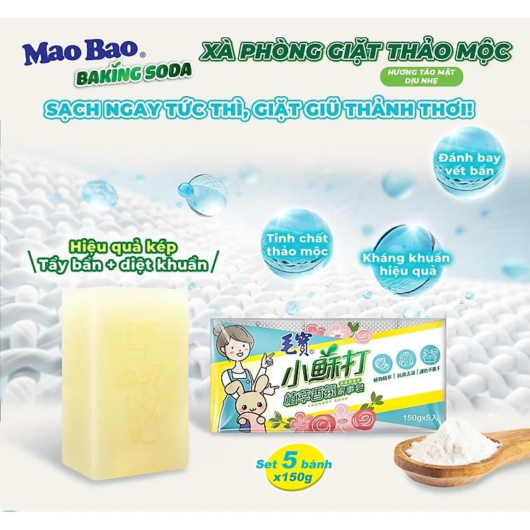 Combo 5 Bánh Viên Xà Phòng Giặt Thảo Mộc 150g, Sạch Ngay Tức Thì, Kháng Khuẩn Hiệu Quả, Đánh Bay Vết Bẩn