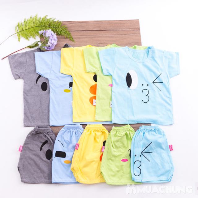 Bộ sản phẩm gồm 5bộ quần áo với họa tiết khác nhau và màu sắc tươi tắn cho bé