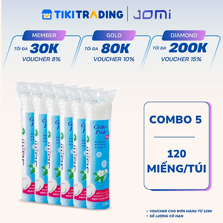 Combo 5 Bông tẩy trang Jomi 120 miếng/gói