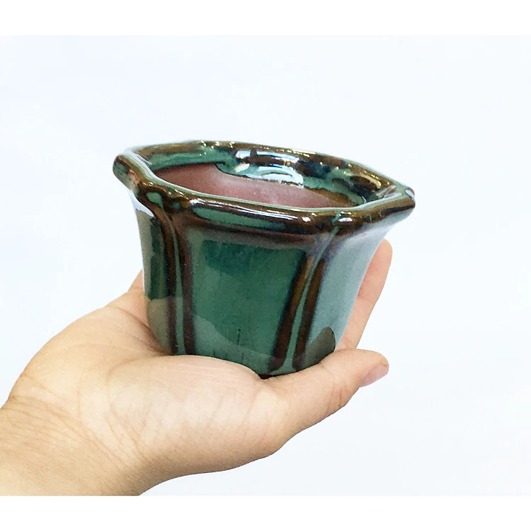 Combo 5 Chậu gốm sứ Bát Tràng làm chậu trồng bonsai, sen đá men hỏa biến có lỗ [Size M6-7xC4-5cm]