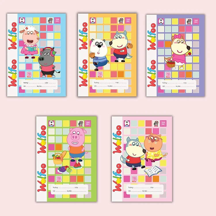 Combo 5 Cuốn Vở 48 Trang 4 Ô Ly WOLFOO