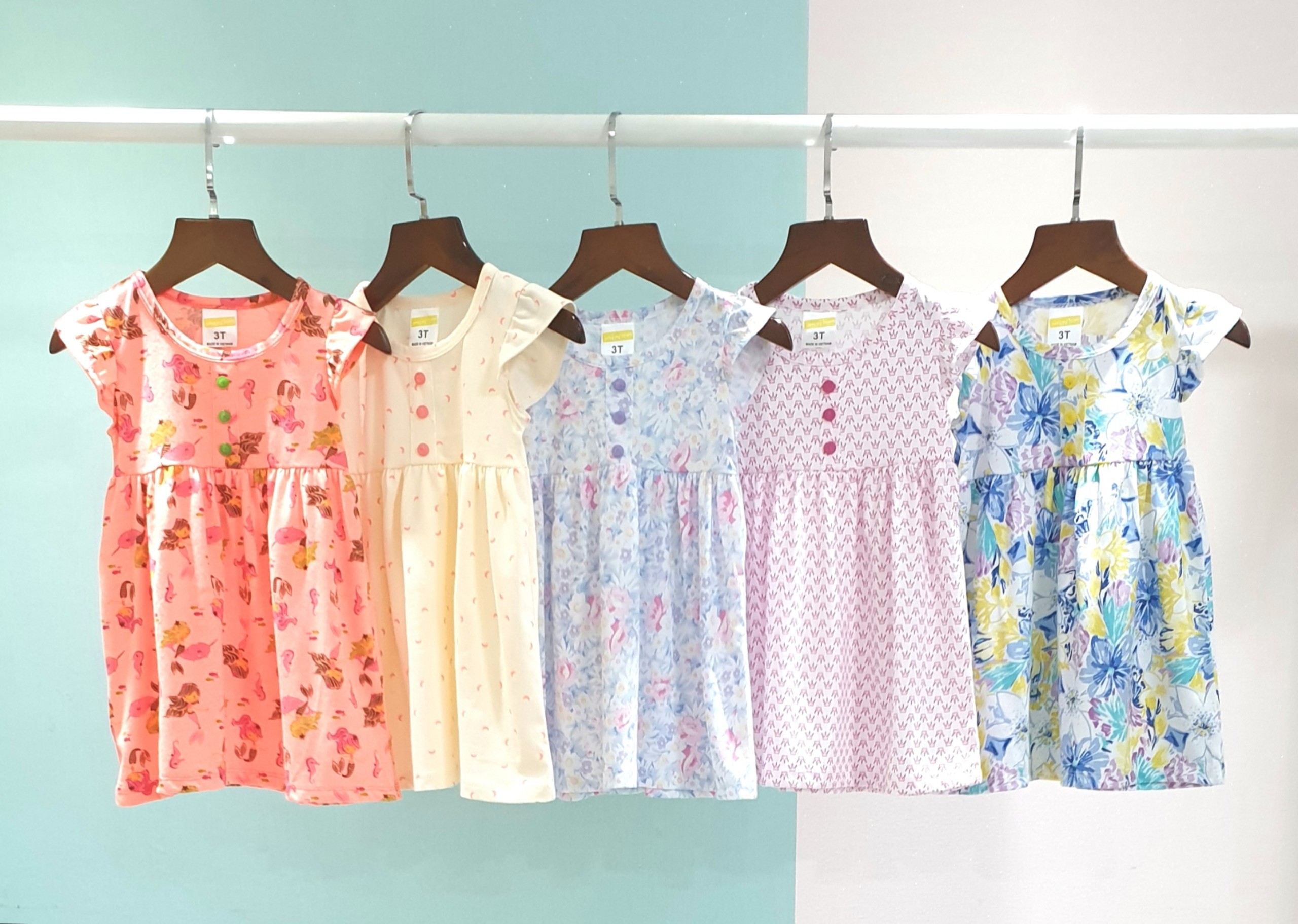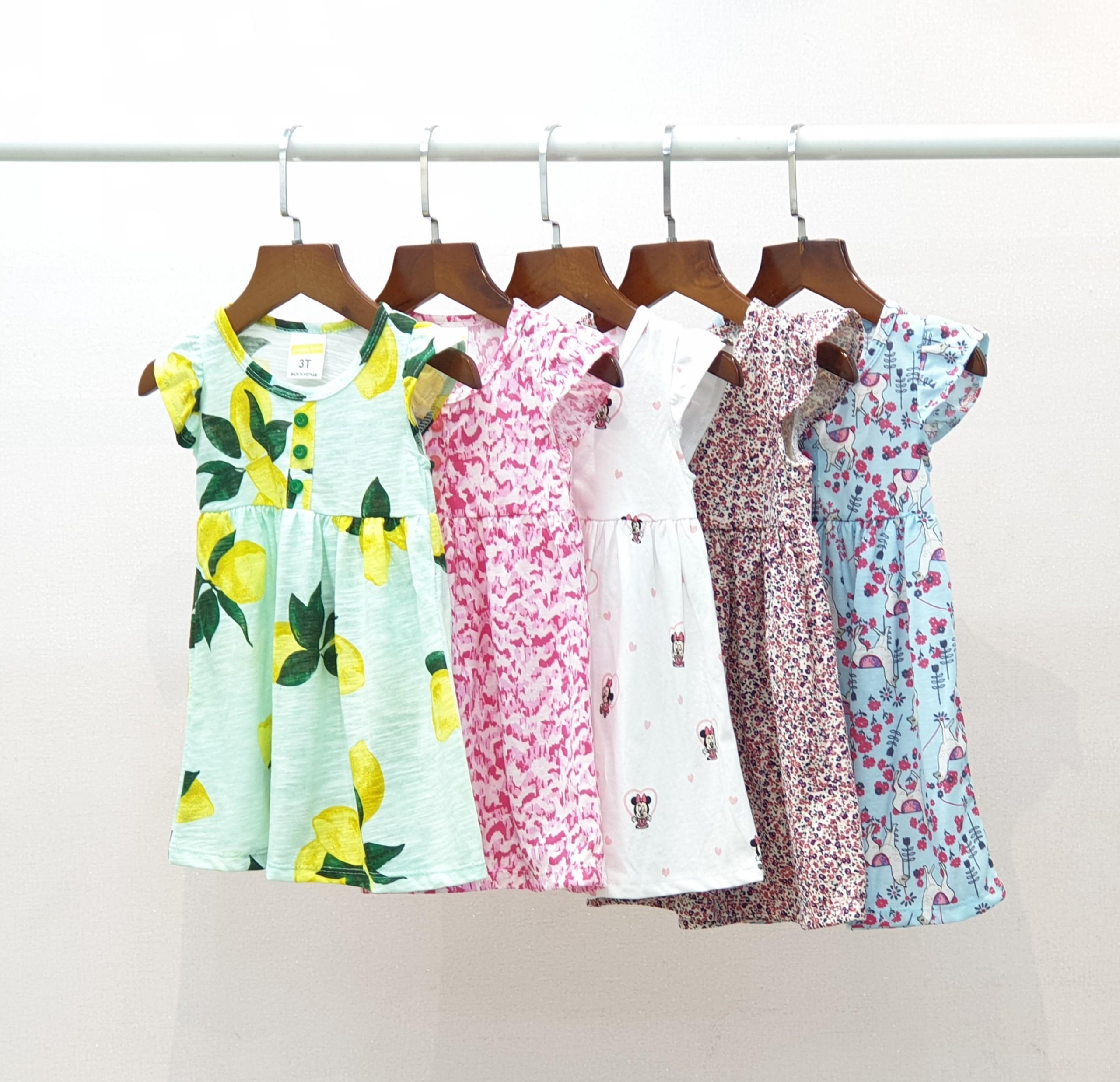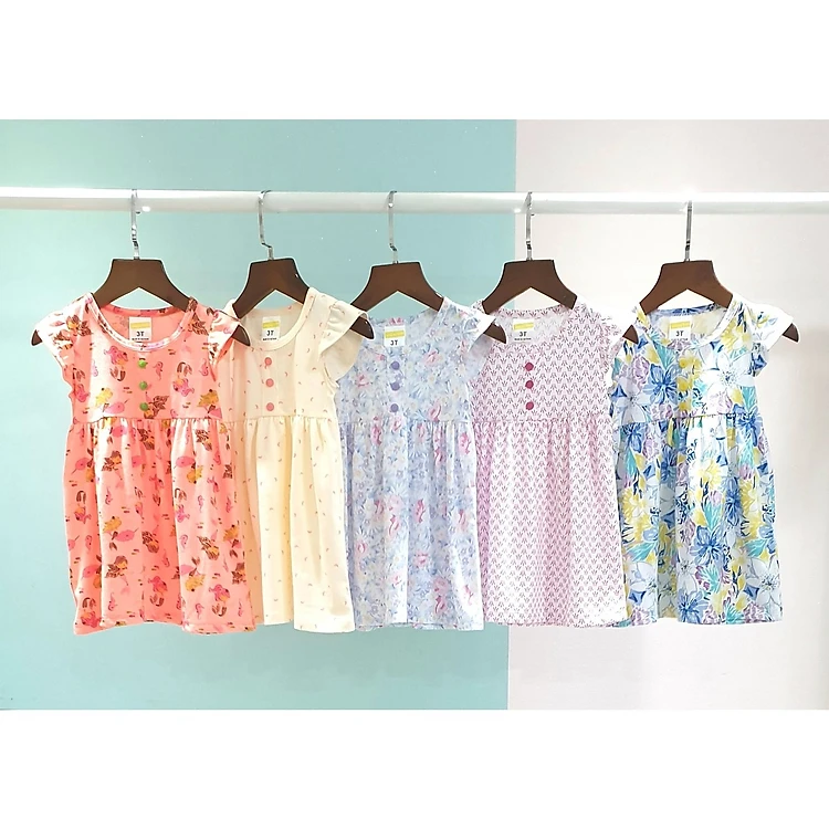 Combo 5 đầm thun ngắn tay Bé gái cùng size trộn màu. Hàng cambodia chuẩn xuất dư xịn. Chất thun cotton thoáng mát, mềm mại, siêu co dãn và cực kì thấm hút mồ hôi