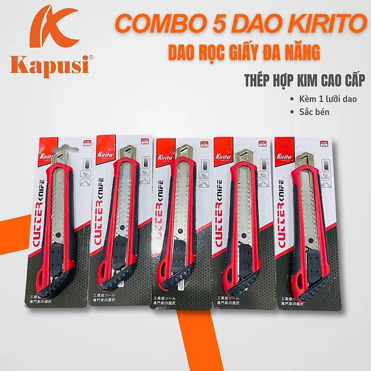 [COMBO 5 Dao rọc giấy KIRITO] lưỡi 18mm - Dụng cụ hỗ trợ trong văn phong cho việc cắt giấy, dây điện, bìa cứng.