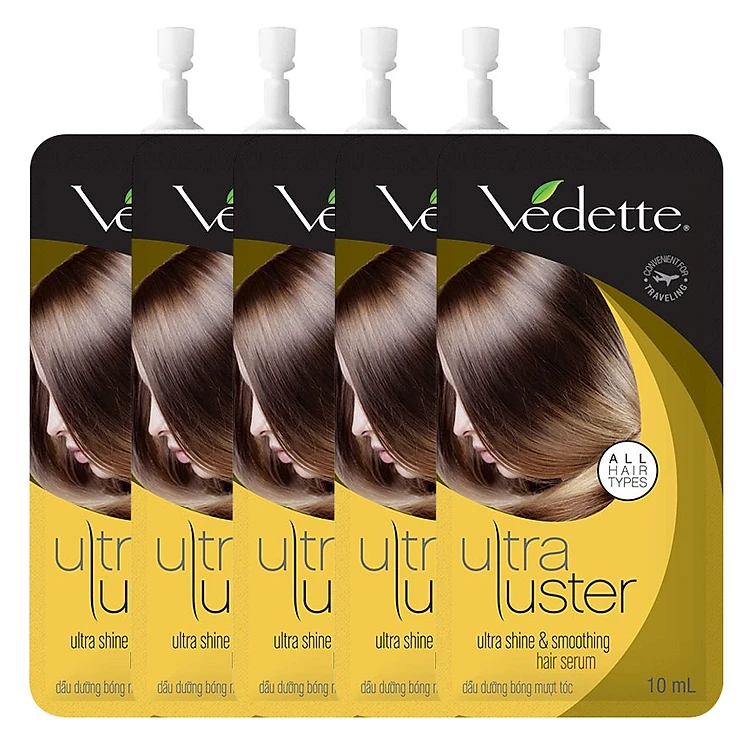 - Combo 5 Dầu Dưỡng Tóc Vedette Mọi Loại Tóc (10ml / Cái) với các thành phần dầu từ thiên nhiên cung cấp lượng dưỡng chất dồi dào thấm sâu vào từng sợi tóc, bổ sung lượng ẩm cần thiết để phục hồi tóc khô, làm giảm tóc chẻ ngọn, cho mái tóc thêm óng ả mượt mà và giữ nếp lâu dài.