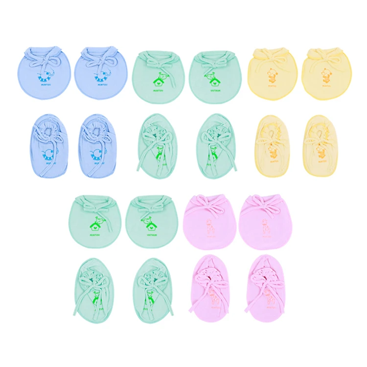 Combo 5 Đôi Bao Tay + Bao Chân Cột Dây Sơ Sinh In Màu Mintuu MT 3061 BT Bộ bao tay chân dễ thương cho bé sơ sinh