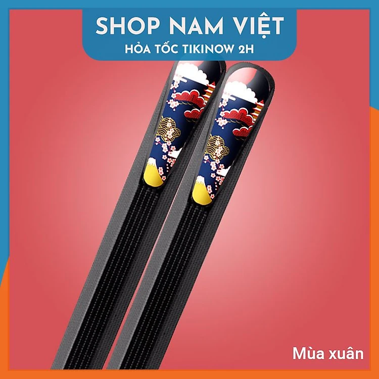 Combo 5 Đôi Đũa Thủy Tinh Đầu Đũa Vạt Xéo Trang Trí Họa Tiết Nhật Bản Phủ Bóng