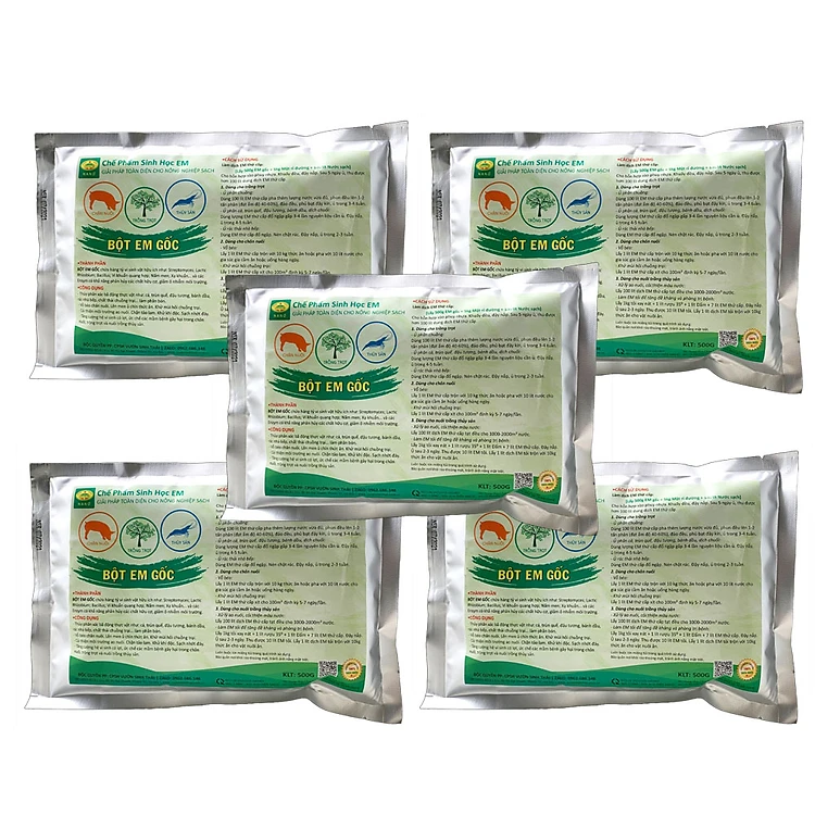Combo 5 gói Chế phẩm sinh học EM gốc 500g - Chứa hàng tỷ vi sinh vật có lợi - Men vi sinh ủ cá, rác bã hữu cơ làm phân bón - Xử lý mùi hôi