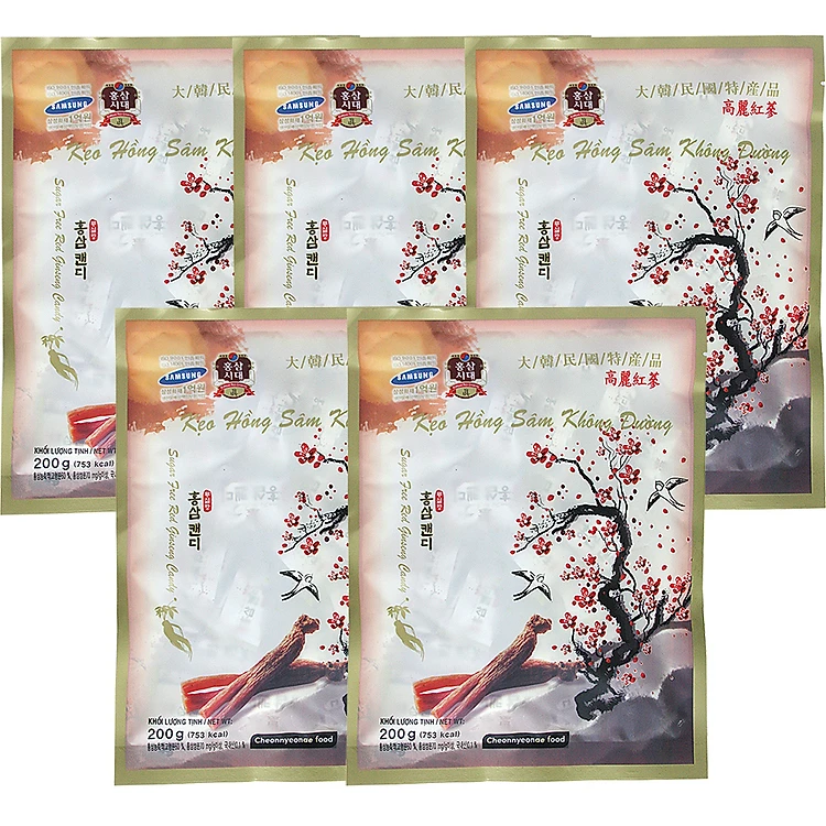Combo 5 Gói Kẹo Hồng Sâm Không Đường Sugar Free Red Gingsen Candy (200g / Gói)