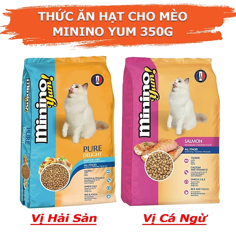 COMBO 5 Gói Thức Ăn Hạt Cho Mèo Vị Cá Hồi Và Hải Sản Minino Yum 350g