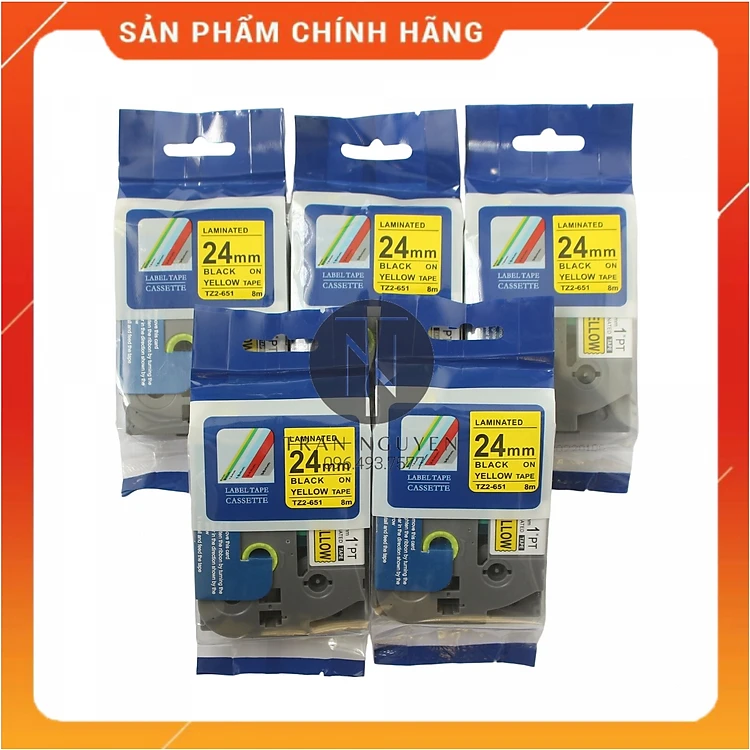 [Combo 5 hộp] Nhãn In đa lớp Tz2-651 - Đen nền vàng 24mm x 8m - Hàng nhập khẩu