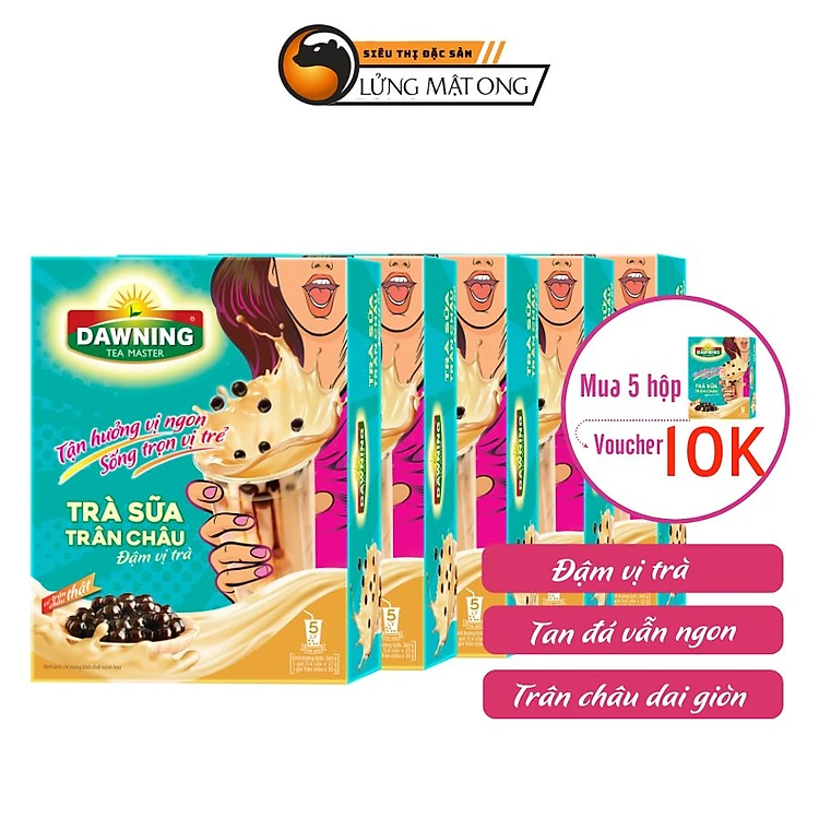 Combo 5 hộp trà sữa trân châu DAWNING Đậm vị trà, hương thơm trà tự nhiên giúp tỉnh táo 260g