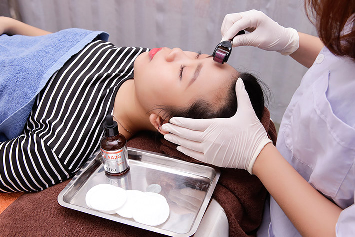 Bước 7: Thực hiện lăn kim với tế bào gốc lên vùng cần điệu trị.