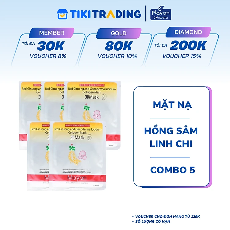 Combo 5 Mặt Nạ 3D Mayan Hồng Sâm Linh Chi
