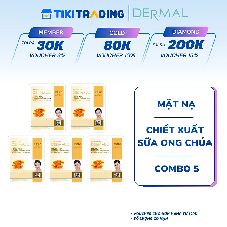 Combo 5 Mặt Nạ Dermal Tinh Chất Collagen Với Chiết Xuất Sữa Ong Chúa