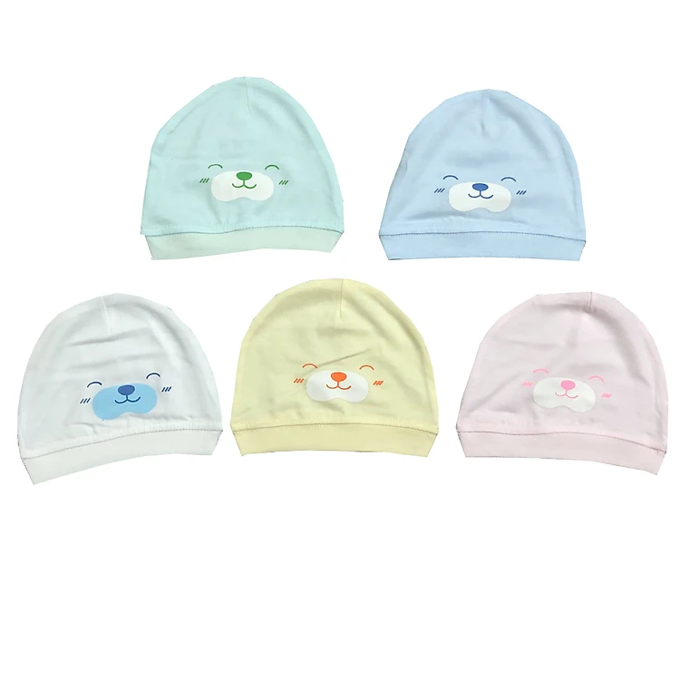 Set 5 Cái Mũ sơ sinh cotton In Gấu dễ thương cho bé trai, bé gái - chất vải cotton 100% mềm, mịn, thoáng mát và thấm hút mồ hôi