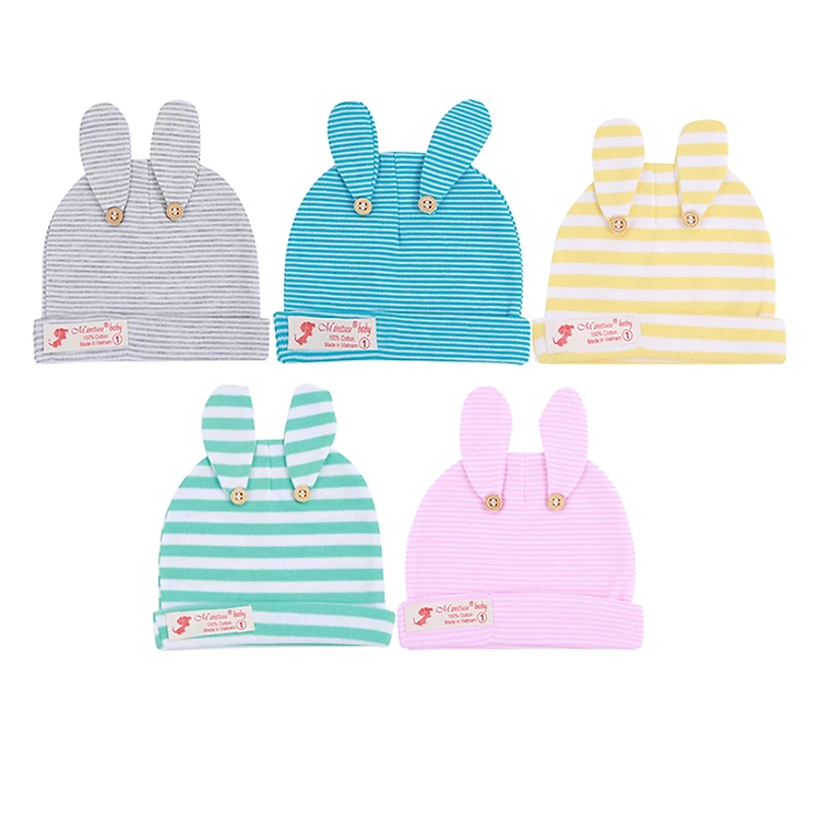 Combo 5 mũ tai thỏ sọc màu Mintuu MT 6091 (0-6 tháng) được may từ chất liệu vải cotton cao cấp, có độ đàn hồi, không gây kích ứng da, an toàn cho bé khi sử dụng.