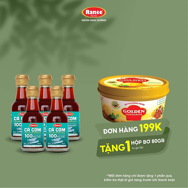 {Đơn 199k tặng hộp bơ 80g} Combo 5 Nước mắm dinh dưỡng Ranee cá cơm vị truyền thống 40 độ đạm chai 60ml ( 5 chai x60ml)