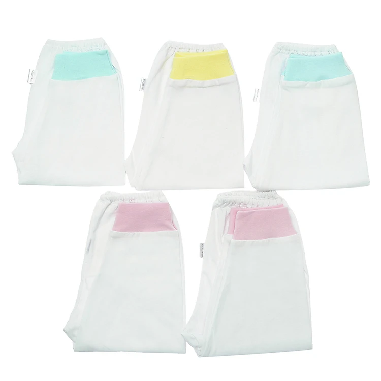 Combo 5 Quần Dài Rã Đáy Trắng Bo Nanio được may bằng vải Cotton cao cấp, mềm mịn, an toàn với làn da non nớt của trẻ. Quần thiết kế rã đáy với cấu tạo đũng quần riêng rất tiện lợi khi đóng tã cho bé. Với màu trắng tinh tế, quần mang lại vẻ nhẹ nhàng và trong sáng cho bé khi mặc.