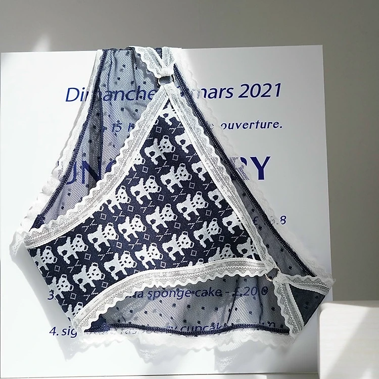 Combo 5 quần lót nữ thun dệt in hình gấu phối ren 409 – Co giãn 4 chiều, siêu mềm mại