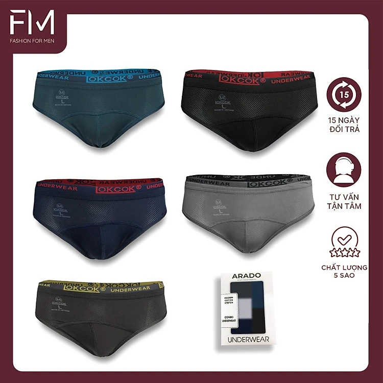 Combo 5 quần lót nam, chất cotton mềm mịn, thiết kế lưới nhật thoáng khí - FORMEN SHOP - FMQS019